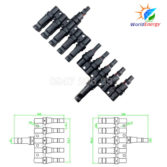 – Đầu kết nối MC4 5T chuyên dụng ghép nối song song 5 tấm pin mặt trời hoặc dãy pin năng lượng lại với nhau